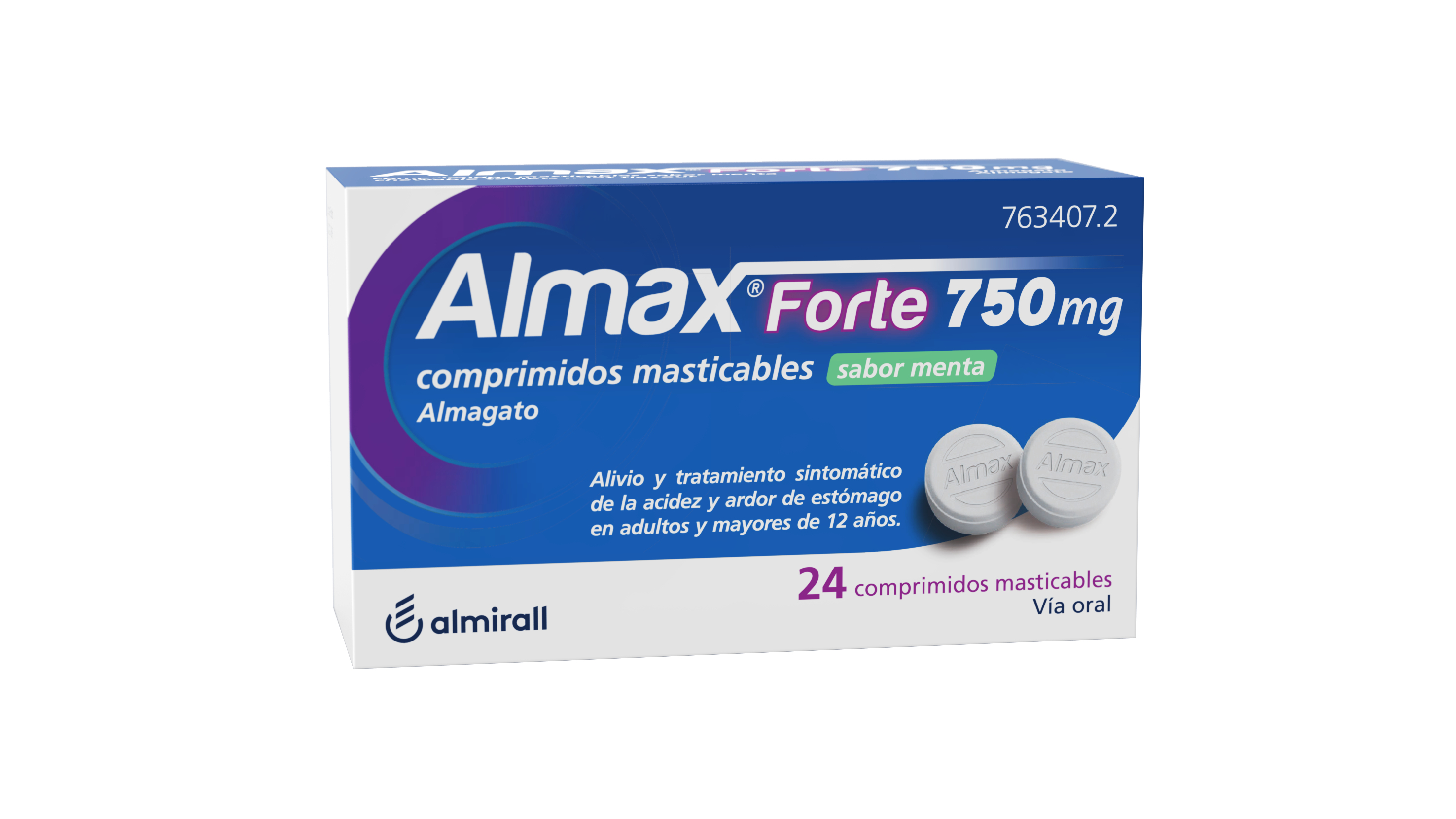 almax forte 750 mg comprimidos masticables sabor menta, 24 comprimidos